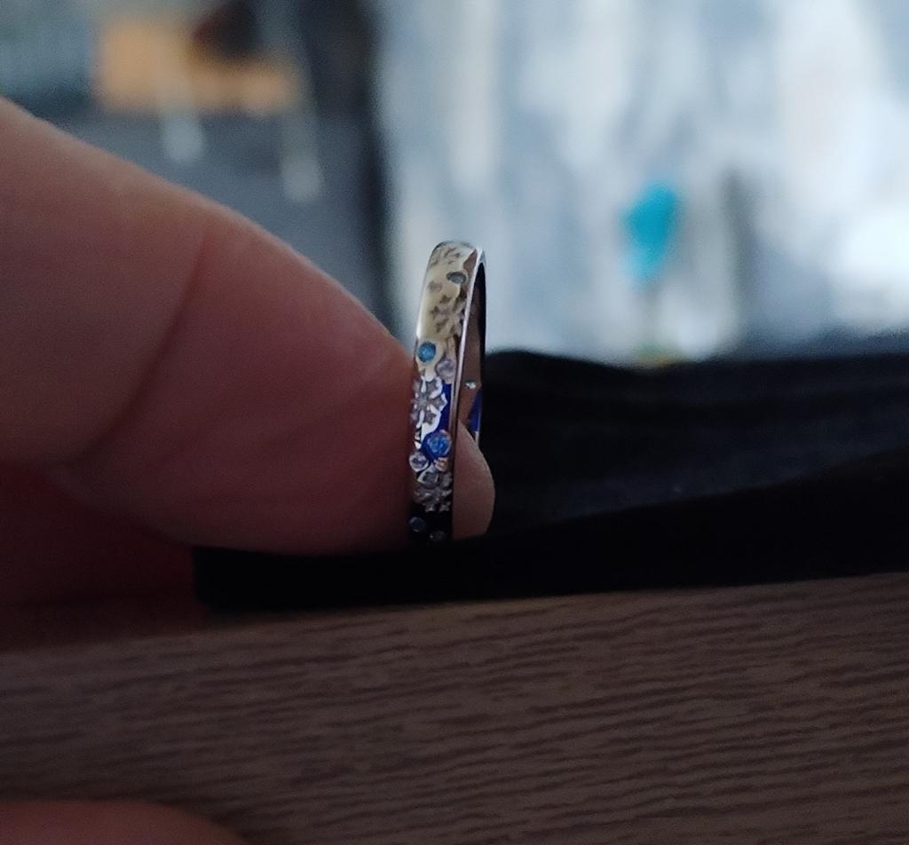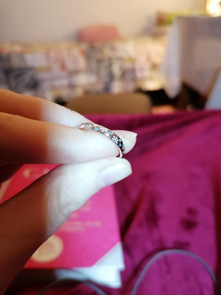 El anillo ha llegado. Corresponde totalmente a la imagen. Fuerte, el metal no se salvó :) Los guijarros son bonitos, el patrón es limpio.. me recuerda a nordberg... Gracias por el bonito regalo: una bolsa de regalo para joyas :)