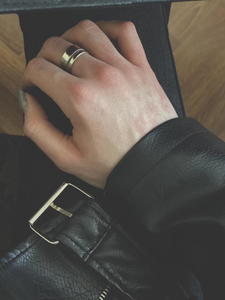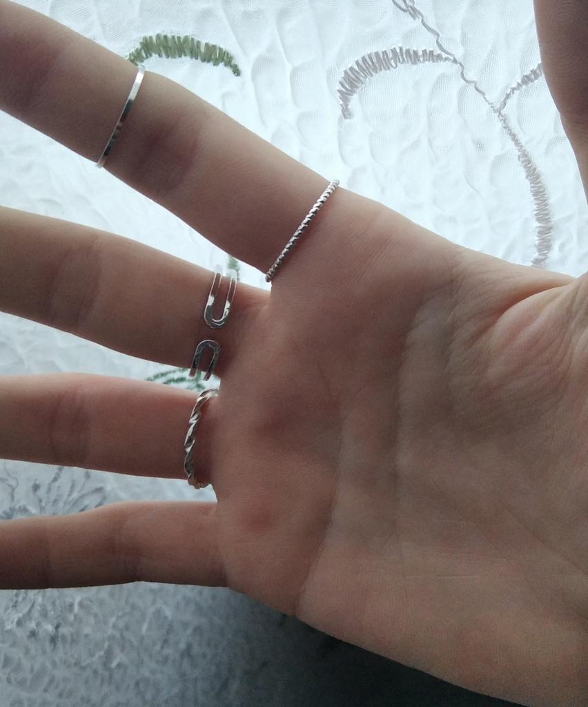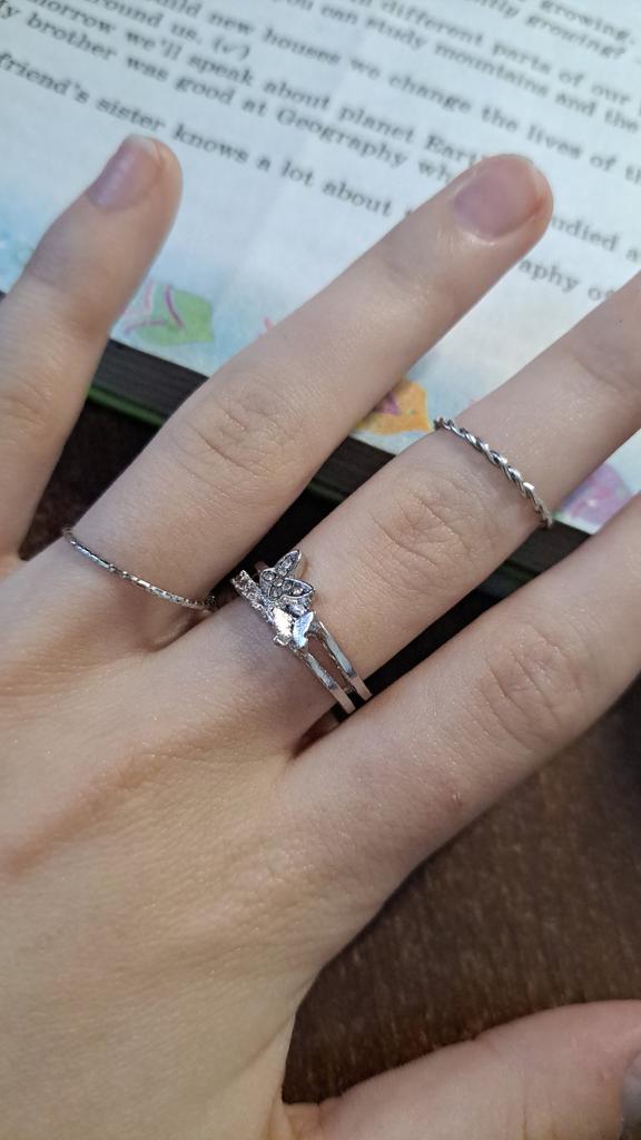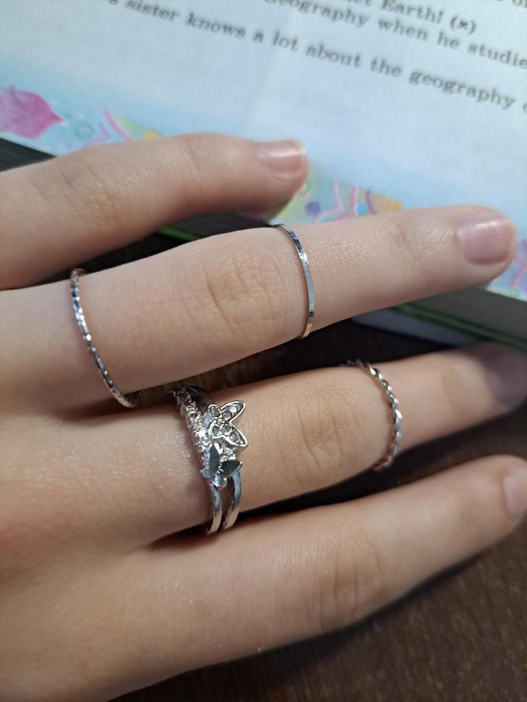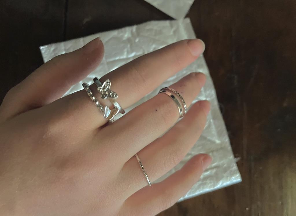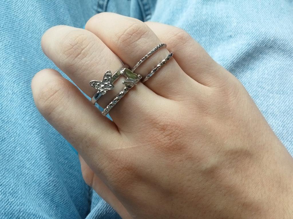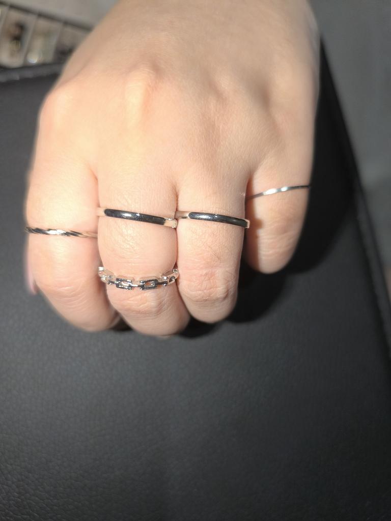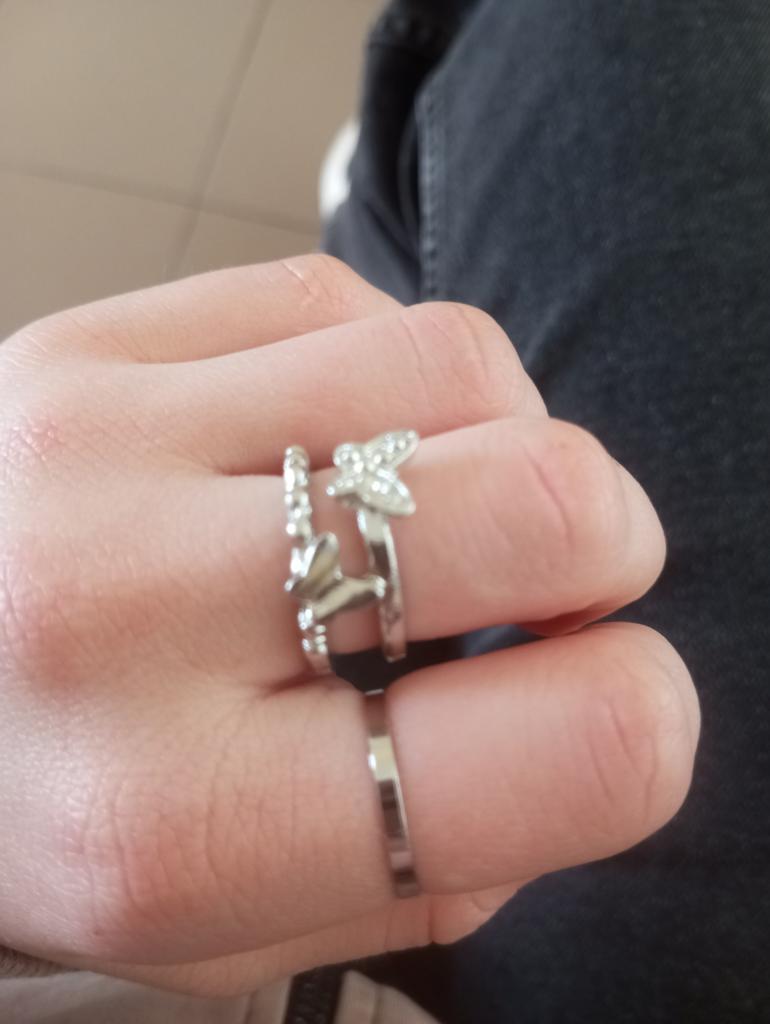 No se ve exactamente como en la imagen, comparé la posición de los anillos como en la imagen, no soy modelo de manos, pero 3 anillos se ven muy delgados💀
