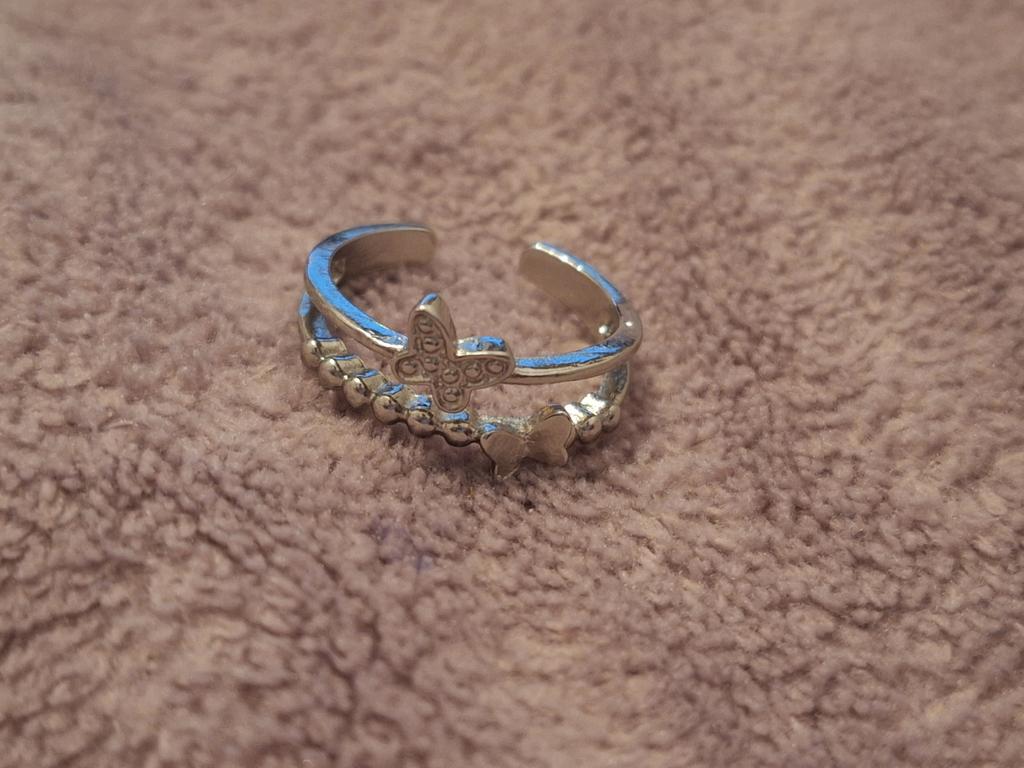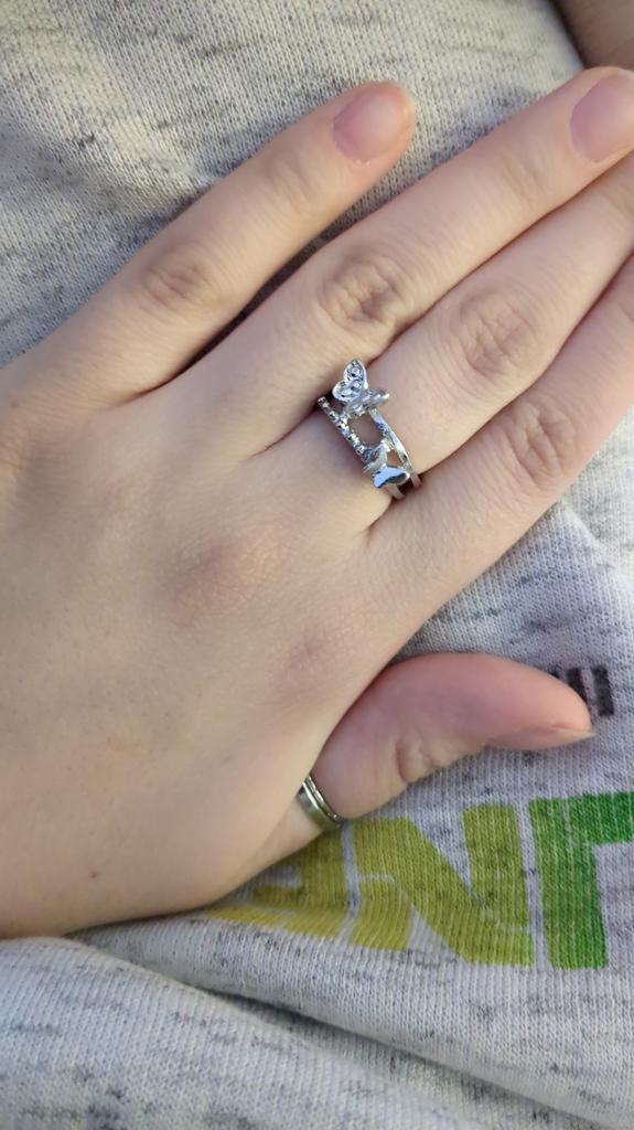 Hermoso. Las mariposas son claras. Es cierto que no me queda bien en los dedos, aunque también queda bien en el meñique.