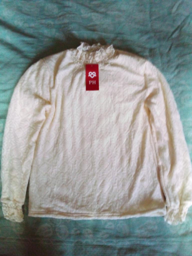 Justo para la talla 140-150. ¡El forro y el material en sí son excelentes! ¡Una blusa suave y bonita! Ni siquiera lo esperaba. Así que recomiendo este producto 💯💯💯💯💯
