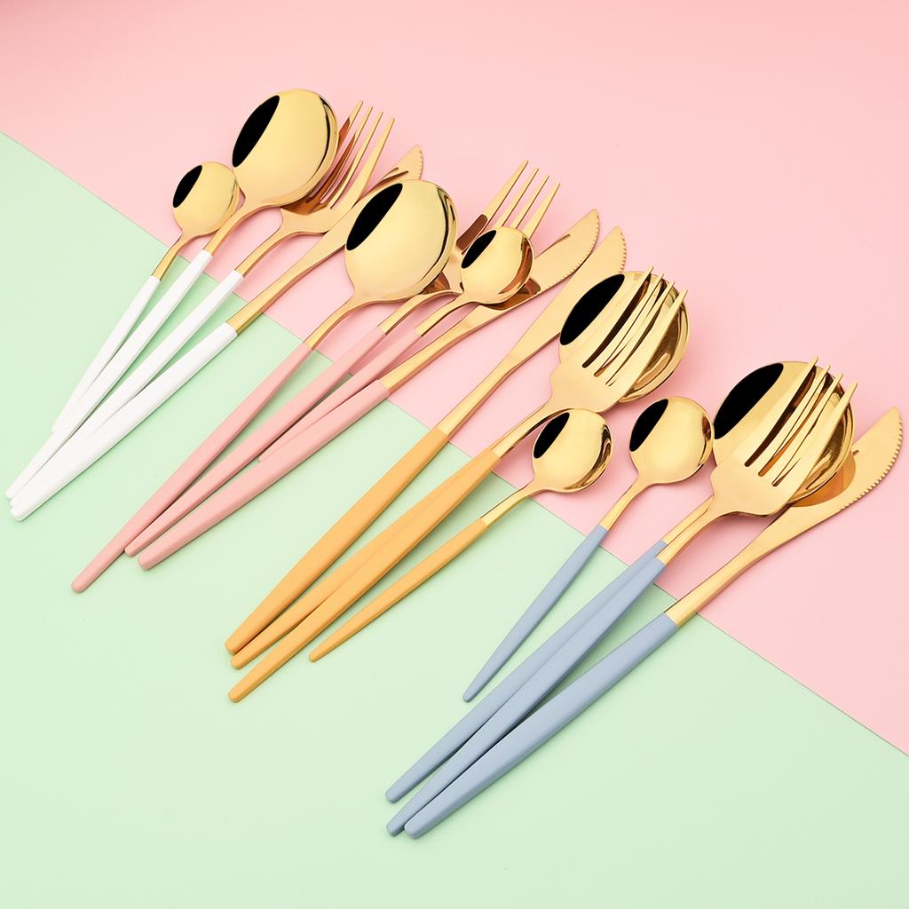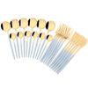 Paquete incluido:6Pcs Cuchillo de cena + 6Pcs Tenedor de cena + 6Pcs Cuchara de cena + 6Pcs Cucharadita.