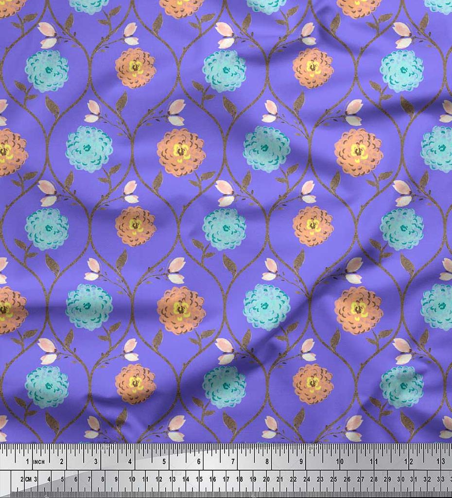 Soimoi Tela de Crepé de Poliéster Morado Estampado Floral de Crisantemo con Hojas y Botones Tela Estampada por Metro 42 Pulgadas