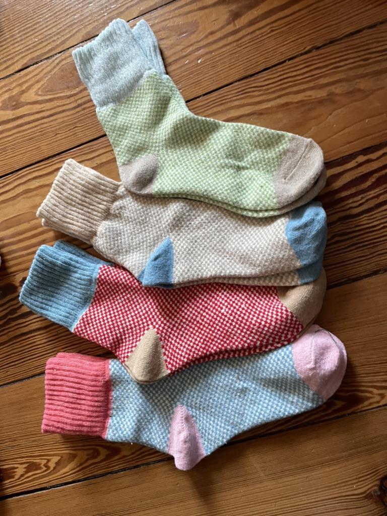 Me encanta el material y los colores. Calcetines muy bonitos.