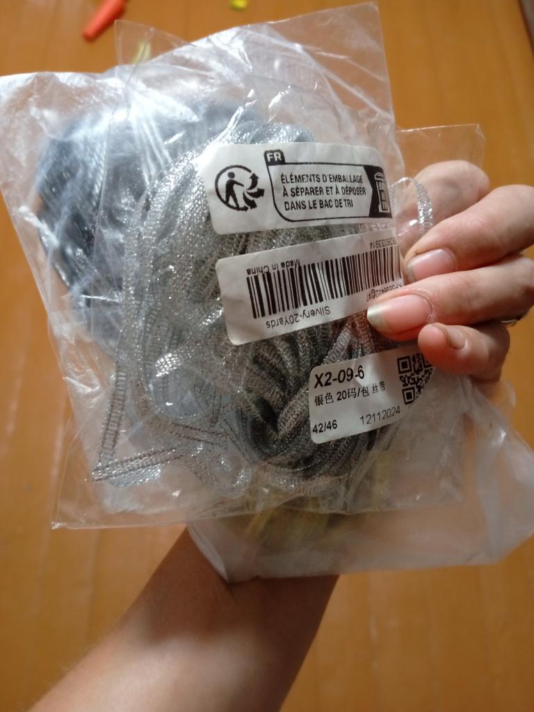 cinta de caprón de color dorado, 3 mm de ancho. Longitud... bueno, probablemente 18-19 m puede haber en la bobina. Calidad ok.