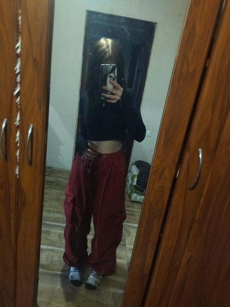 La tela es buena. El corte está suelto. Le cogieron a una chica unos parámetros S, talla L de pantalón para que le quedaran sueltos. Todo encajó.