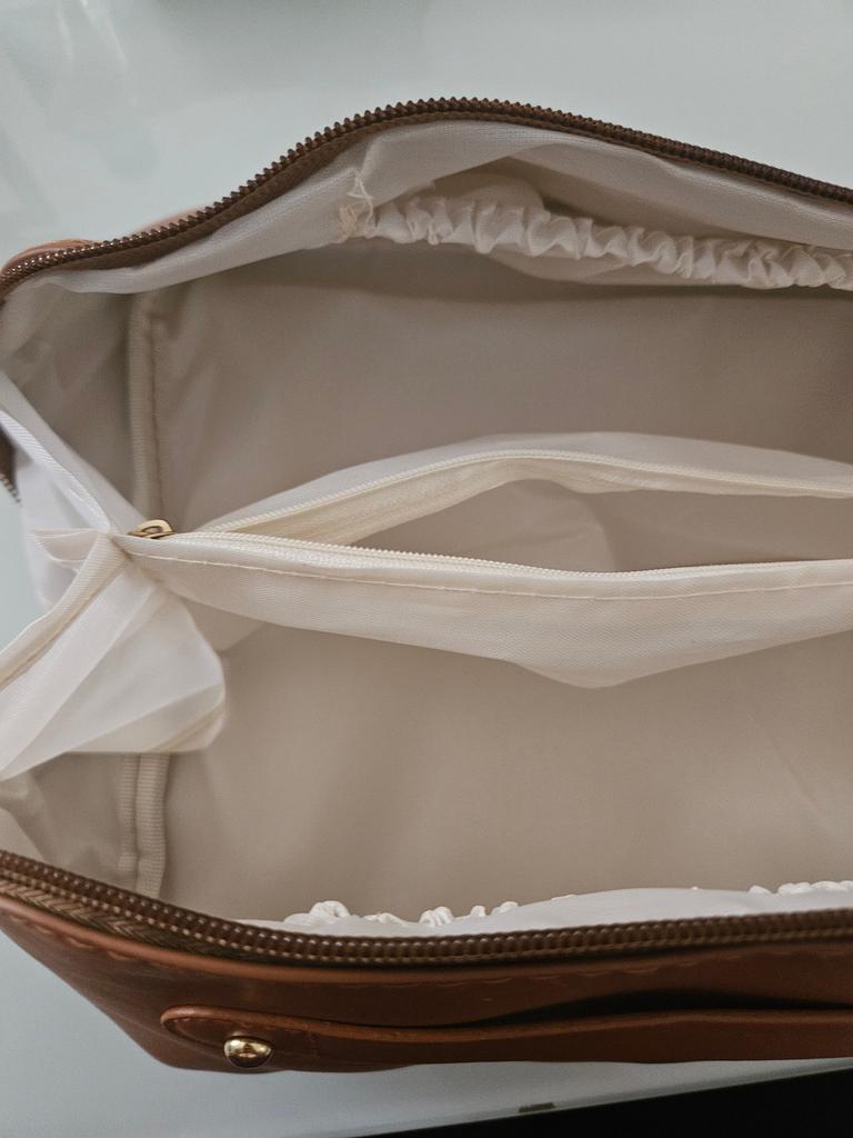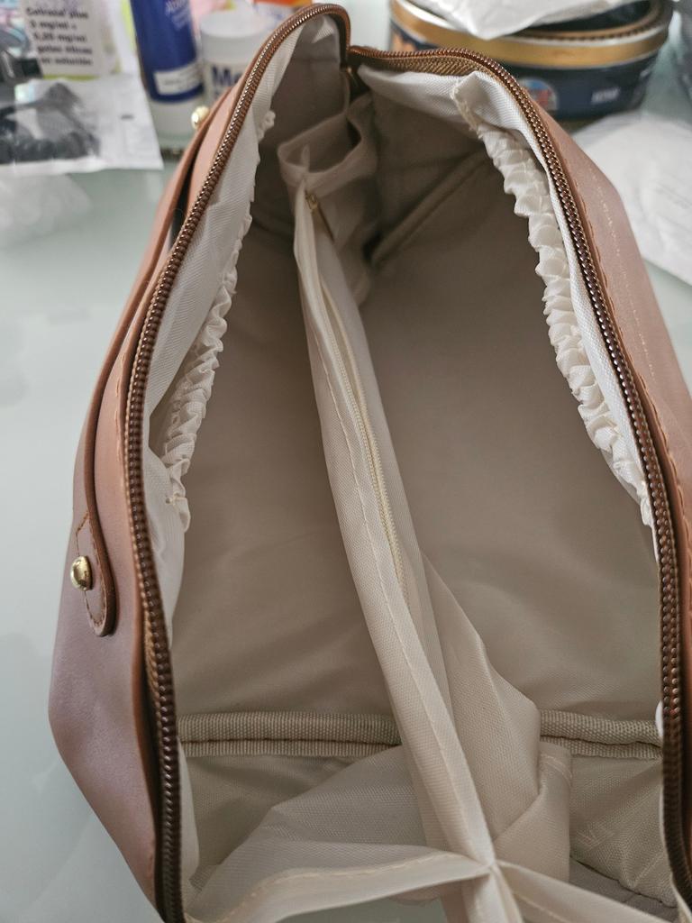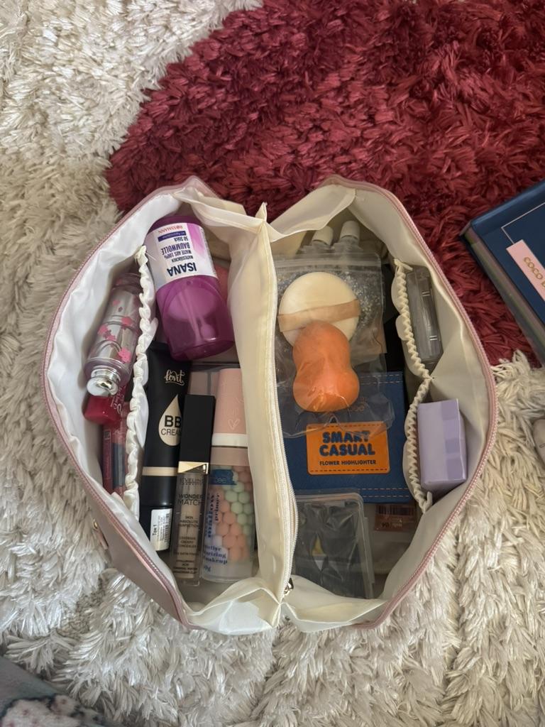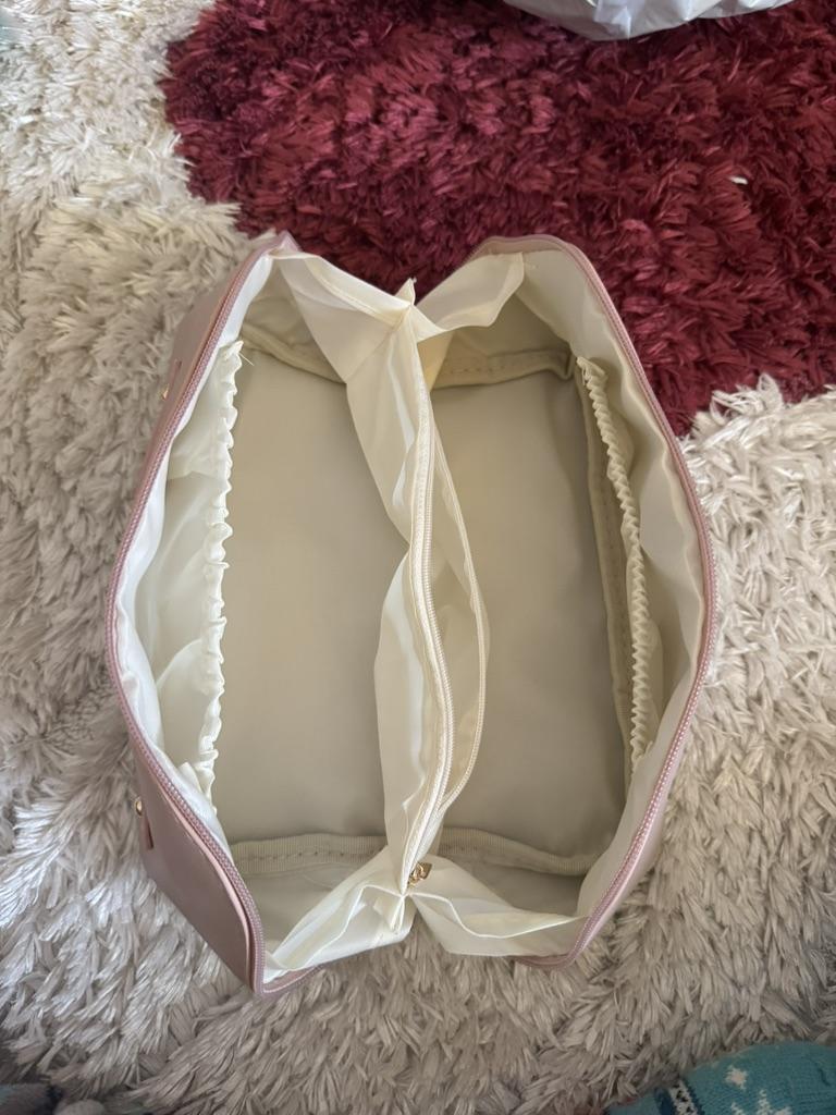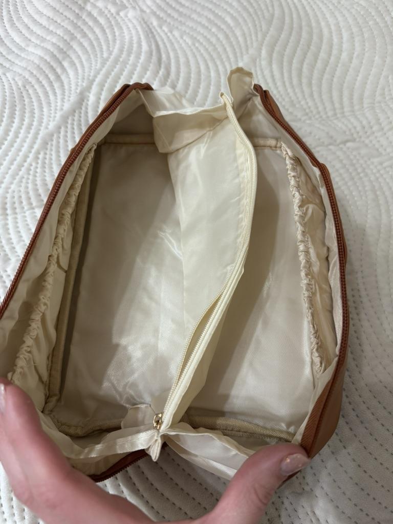 Este bolso es genial. Parece pequeño pero caben muchos productos. Está disponible en 4 colores, son tan bonitos que fue muy difícil elegir cuál. Tiene muchas secciones para separar tus artículos. Lo uso cuando viajo y también para guardar cosas a diario. El precio es genial para este producto y es más de lo que cualquier chica podría necesitar.