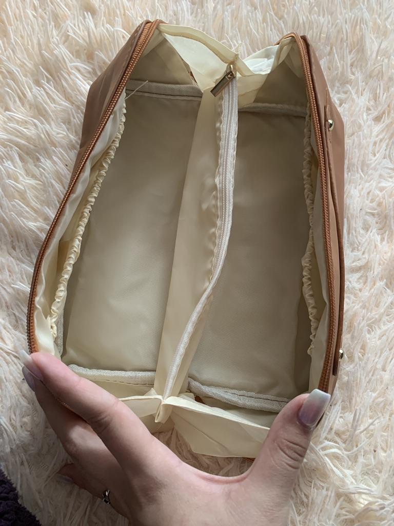 El neceser es un poco más pequeño de lo que esperaba, no tengo muchos cosméticos, pero todo encaja bien, había un olor fuerte y desagradable, pero no hay defectos 👌🏼