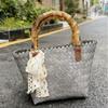 Yogodlns Bolso de paja de verano para mujer, bolso de playa con asa de madera, bolso trenzado hecho a mano, bolso con asa superior de estilo bohemio