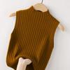 Prendas de punto sin mangas de verano, jersey con cuello medio alto, camiseta para mujer, chaleco acanalado informal de Color puro, corte ajustado
