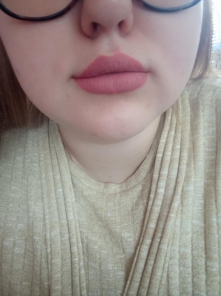 Se pega un poco, no se despega, ¡tiene un olor agradable! Pero en cualquier caso, ¡el lápiz labial mate seca los labios! ¡Una botella bastante pequeña!