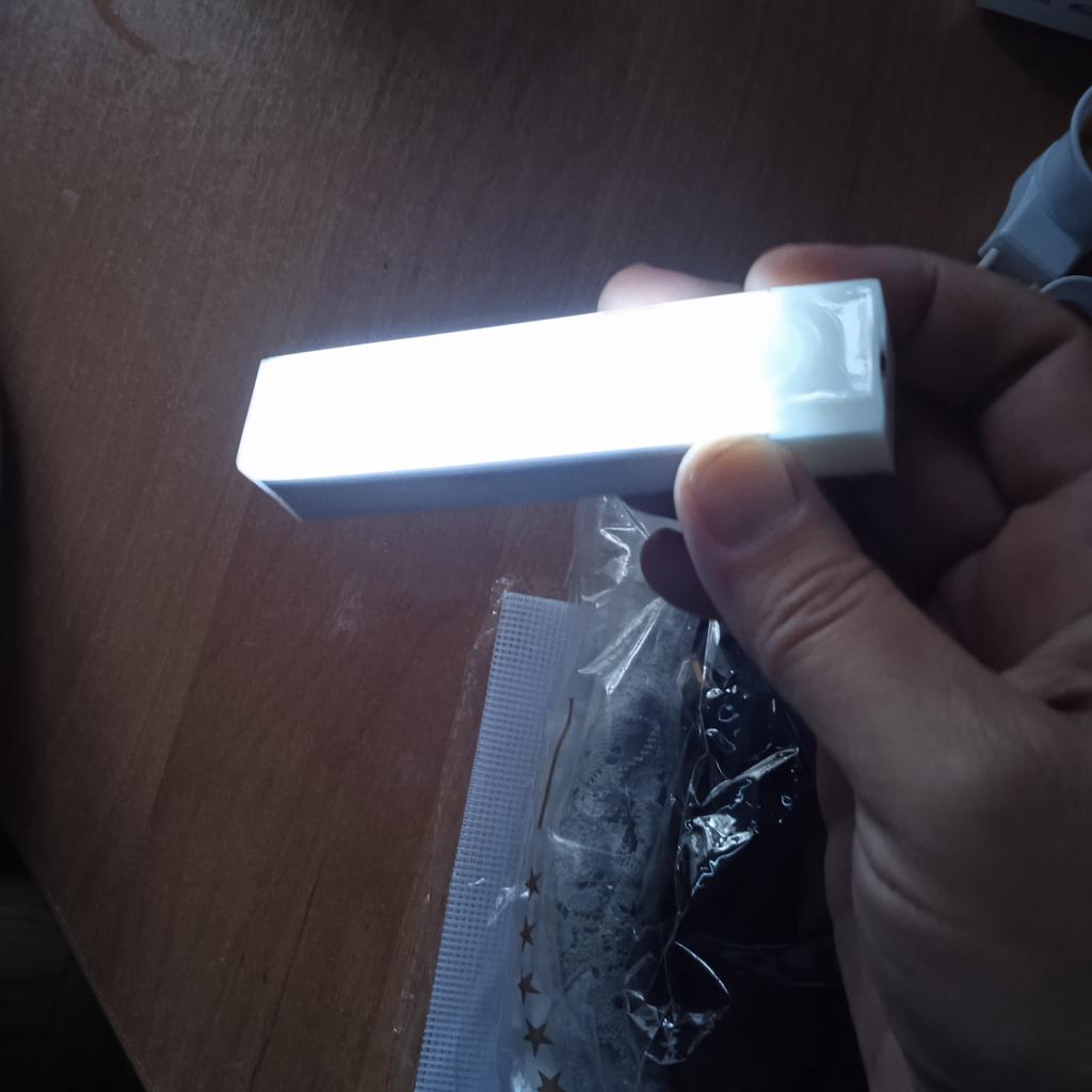 Buena lámpara recargable, hay modo de encendido constante y modo con sensor de movimiento El pedido llegó rápidamente en 2 semanas. todo es completo