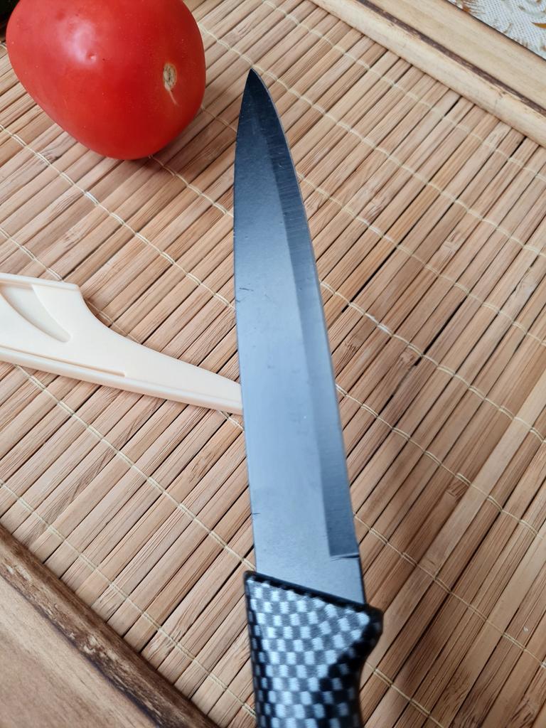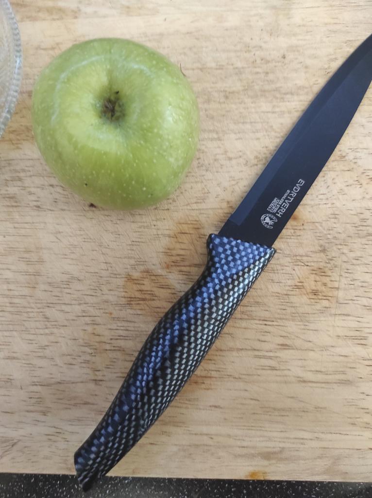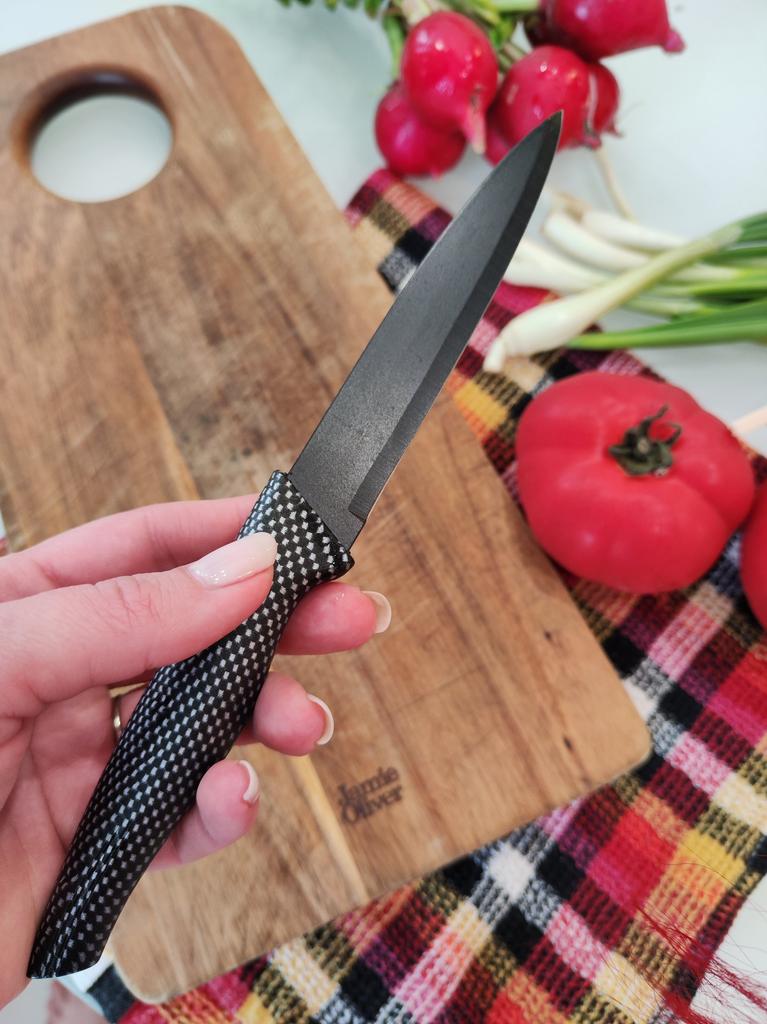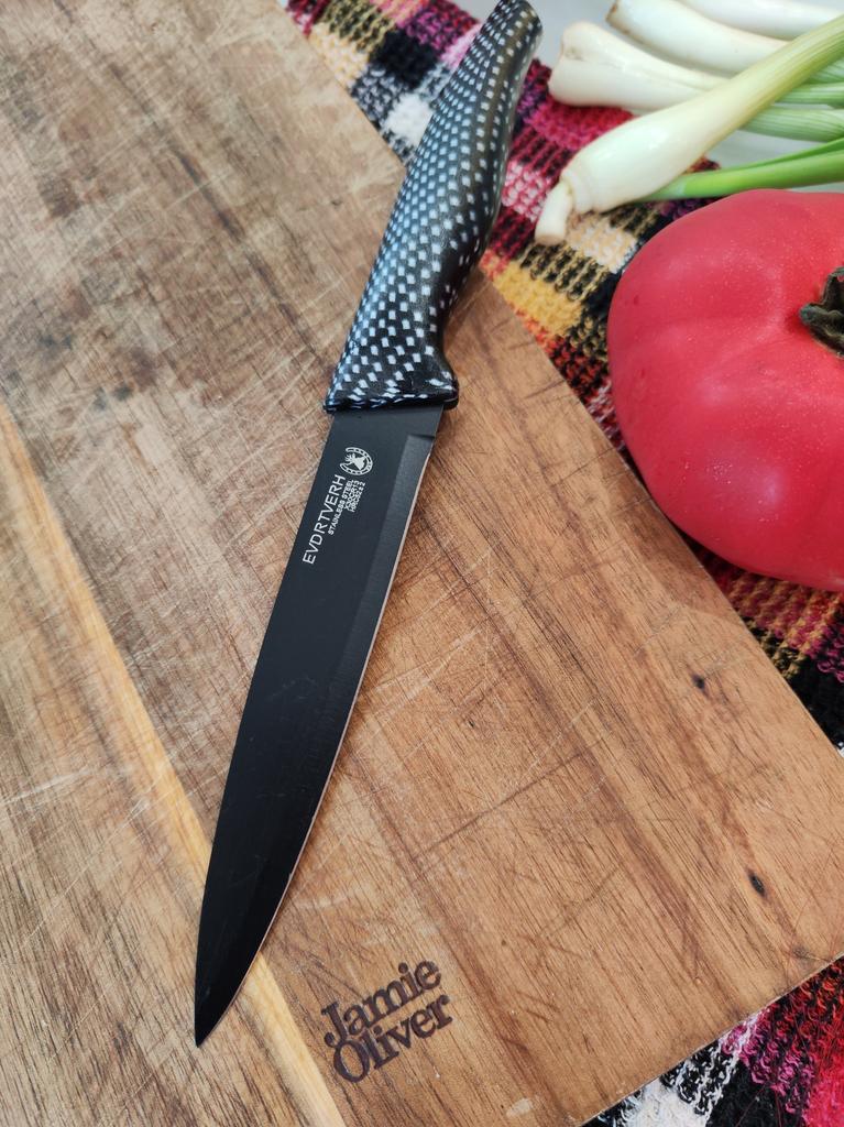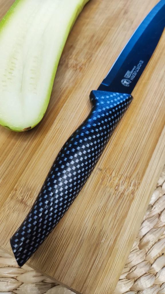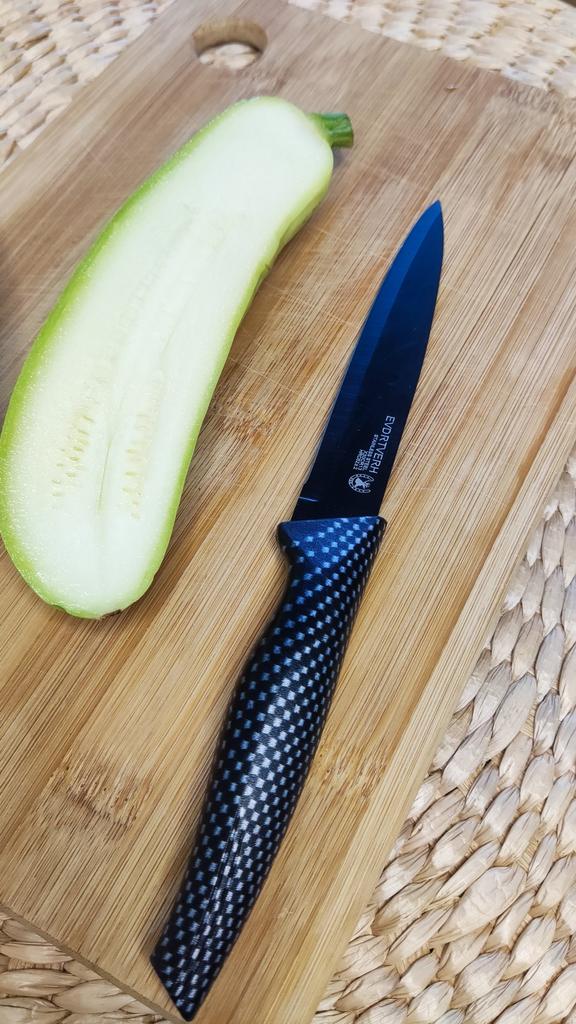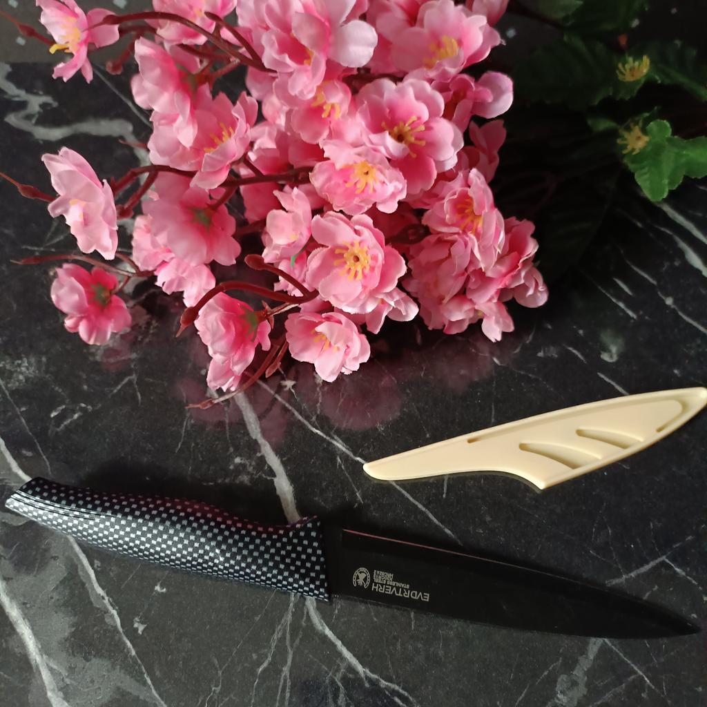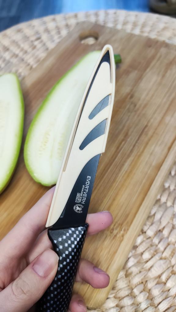 Cuchillo elegante para frutas y verduras. Estos cuchillos me parecen muy prácticos para limpiarlo todo. Se adapta cómodamente a la mano. Picante. Aunque se desgasta bastante rápido, tengo un afilador genial. Buen cuchillo por este precio.. Recomendado para comprar ❤️