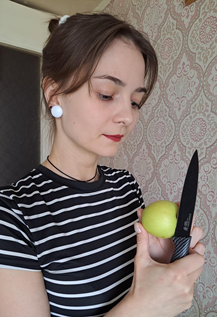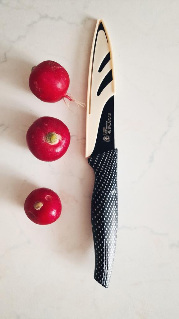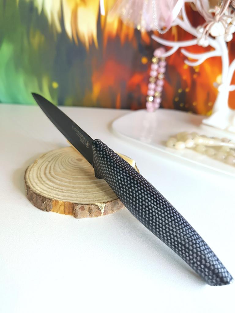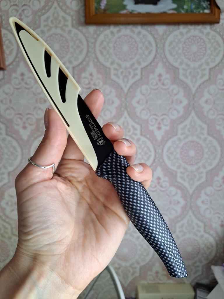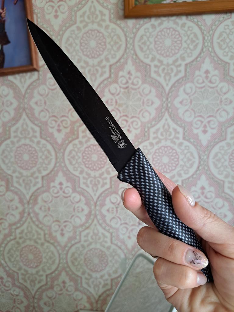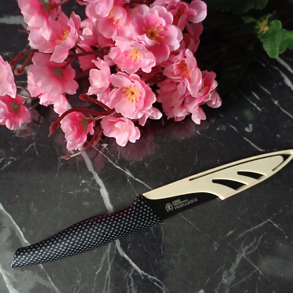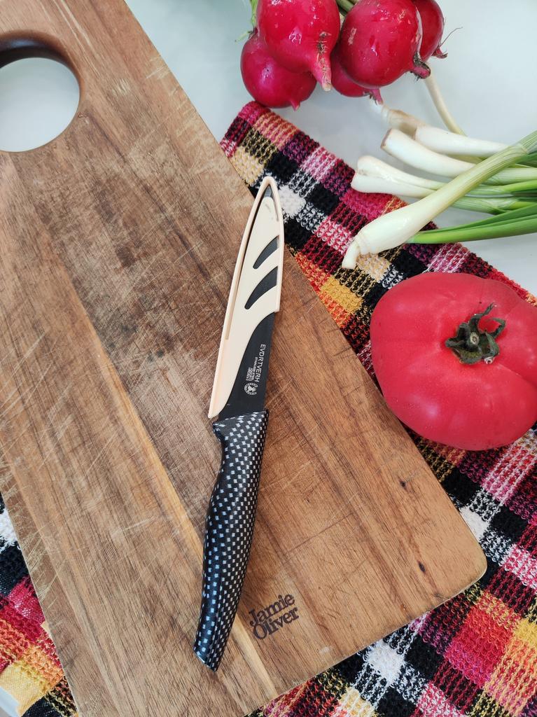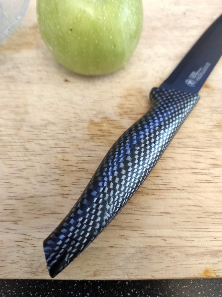 Cuchillo elegante para frutas y verduras. Estos cuchillos me parecen muy prácticos para limpiarlo todo. Se adapta cómodamente a la mano. Picante. Aunque se desgasta bastante rápido, tengo un afilador genial. Buen cuchillo por este precio.. Recomendado para comprar ❤️