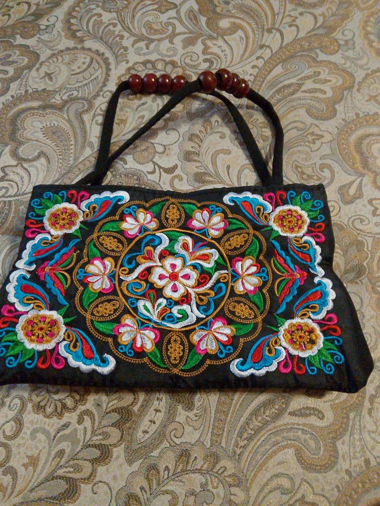 Yogodlns Bolso de doble capa bordado de doble cara de estilo étnico, bolso de lona bordado, bolso de mujer de mediana edad y mayor