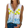 Blusas de verano con estampado Floral de encaje y cuello en V para mujer, camisa informal sin mangas, Tops elegantes a la moda para mujer, ropa para mujer 24858 2023