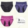 3 unids/lote bragas fisiológicas grandes para mujer, pantalones de cuatro capas, ropa interior de encaje de cintura media alta, parte delantera y trasera para evitar fugas, calzoncillos para el período menstrual