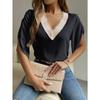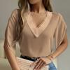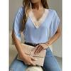 Women Elegant Youth Office Lady Shirt 2023 Spring Fashion Lace V Neck Chiffon Blouse Half Short Sleeve Summer Top 25837