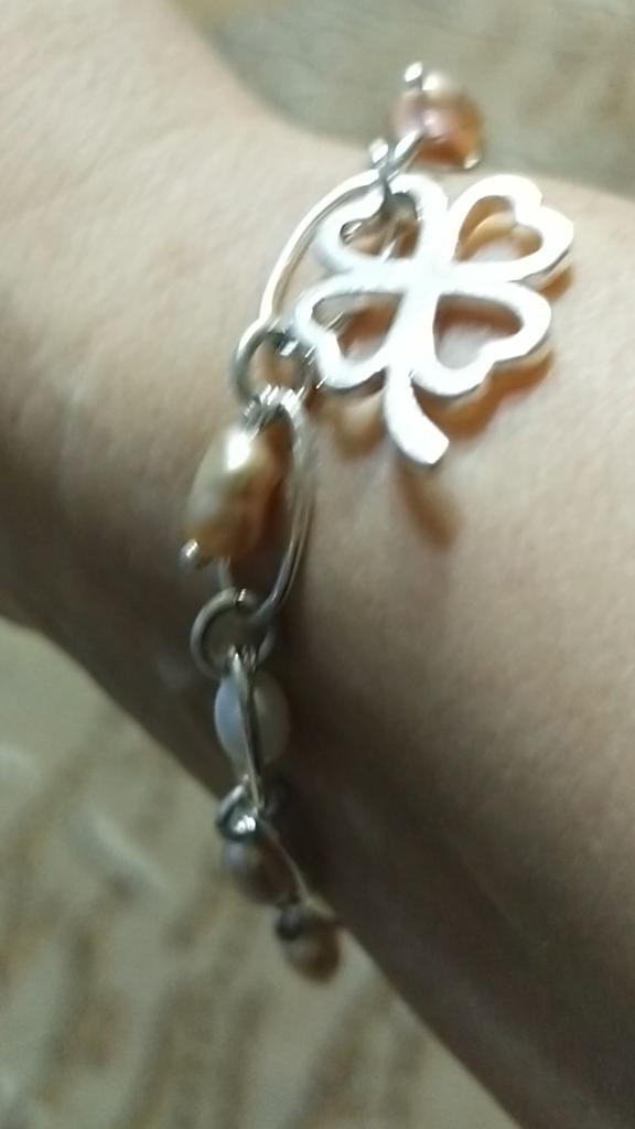 Pulsera muy bonita. La rifa fue un éxito, tuve suerte... La pulsera no se oscurece, la mano no se pone verde
