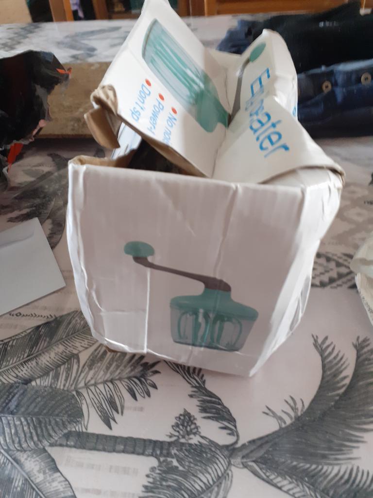 Aparte del cartón dañado, el dispositivo parece estar en buen estado. Más que intentar La manivela se quita fácilmente