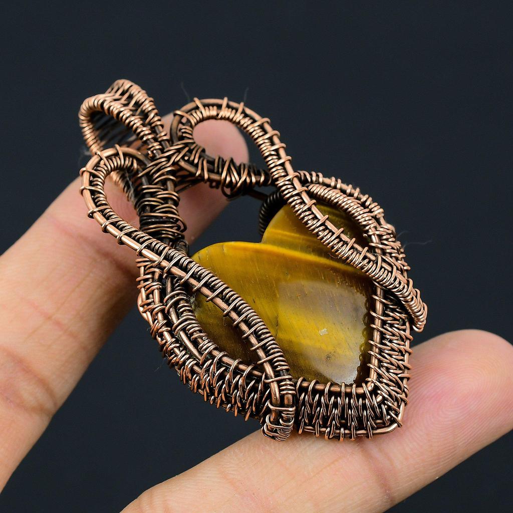 Colgante de joyería hecho a mano envuelto en alambre de cobre con piedras preciosas de ojo de tigre en forma de corazón, regalo de boda