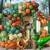 119 Uds. Decoración de fiesta de cumpleaños de dinosaurio, arco de globos, set de guirnaldas, globos de feliz cumpleaños, cortinas de papel de aluminio, recuerdo de fiesta temática de dinosaurio