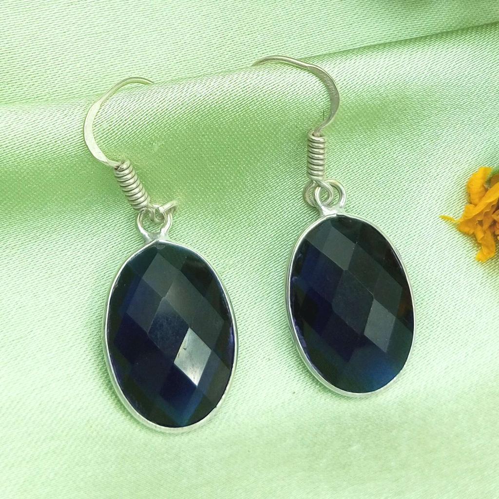 Pendientes de mujer con gancho chapado en plata de ley 925 con piedras preciosas de topacio azul WHE-E44