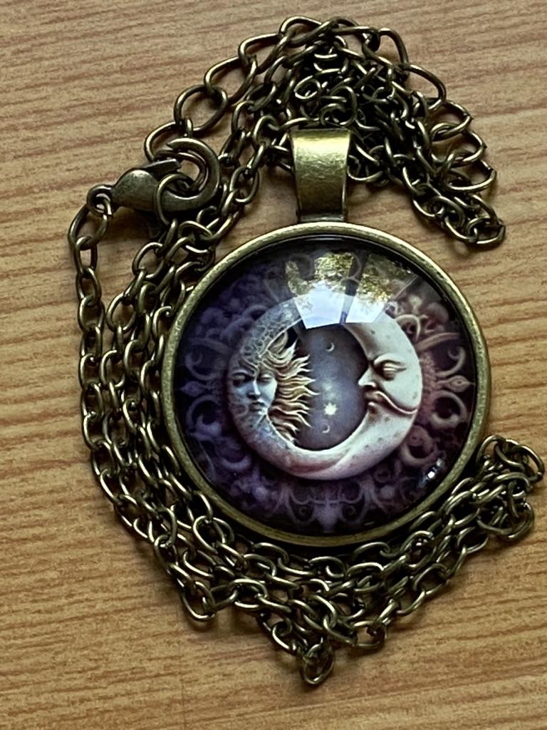 Brujería Luna y Sol Cristal Cabujón Colgante Collar Mujer Collar Joyería