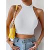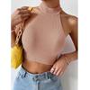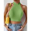 Suéter básico de verano para mujer, camisetas sin mangas, suéter informal de punto acanalado sin mangas para mujer, Top corto elástico con corsé, Top corto con cuello Halter