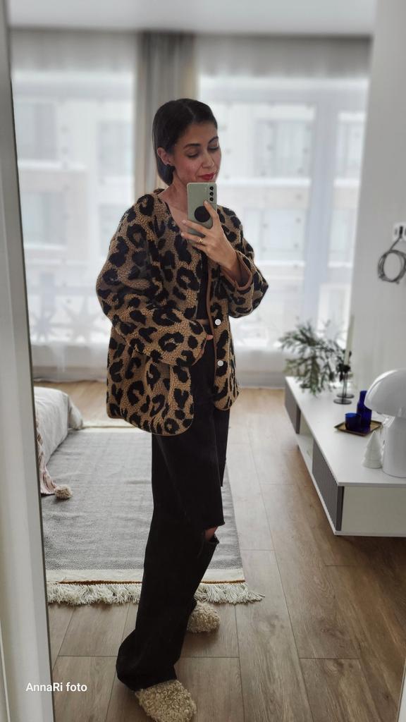 Coats for Women Oversize Cotton Fleece Leopard Fur Coat Autumn Winter Cardigan Casual Long Sleeve Women Coat