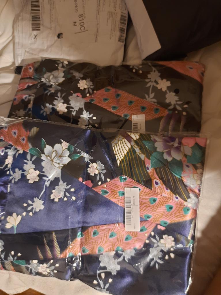 Buen kimono de satén. El kimono, cuanto más holgado, mejor... Así también se puede. Mi talla es 62-64.