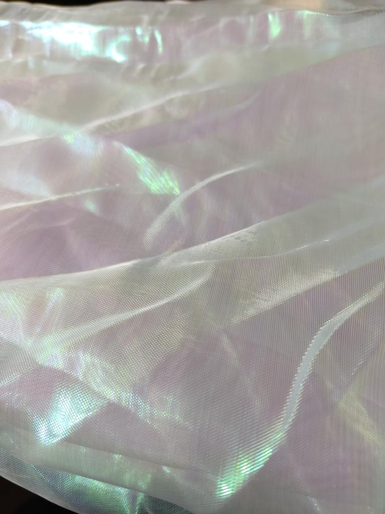 Tela de malla de costura colorida, hilo fluorescente, hilo de vidrio de Organza, tela de tul láser, gasa de seda