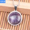 Collar De Cristal Natural De Moda con Personalidad Europea Y Americana De Acero Inoxidable De Piedra Plana Simple para Mujer