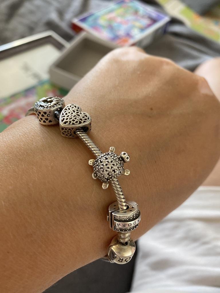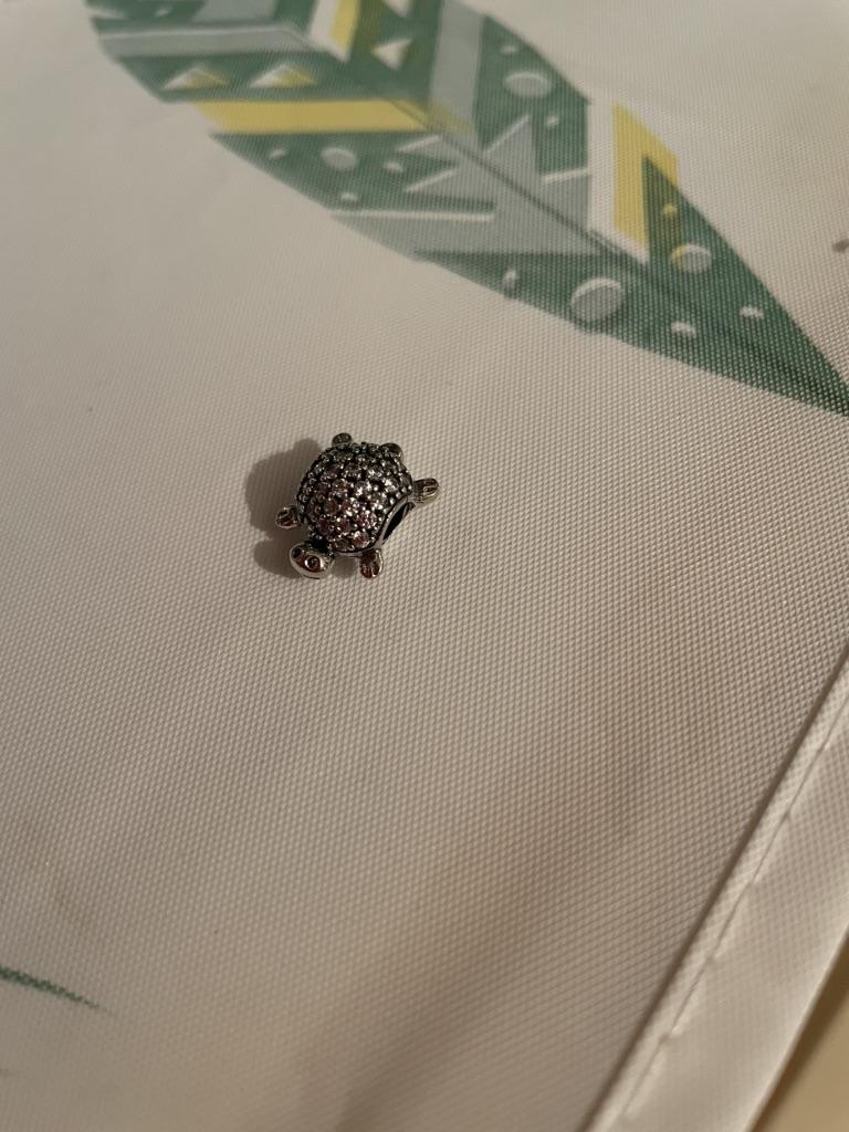 La tortuga es chula, pero no encaja en la pulsera, el agujero es pequeño...