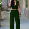Mono de primavera y verano para mujer, moda sexual, informal, cintura alta, cuello en V, pantalones de pierna ancha, pantalones con cinturón