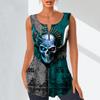 Camisas con cuello en V a la moda para mujer, camisetas informales, chaleco con estampado de esqueleto oscuro en 3D, blusa sin mangas de talla grande, camisetas sin mangas