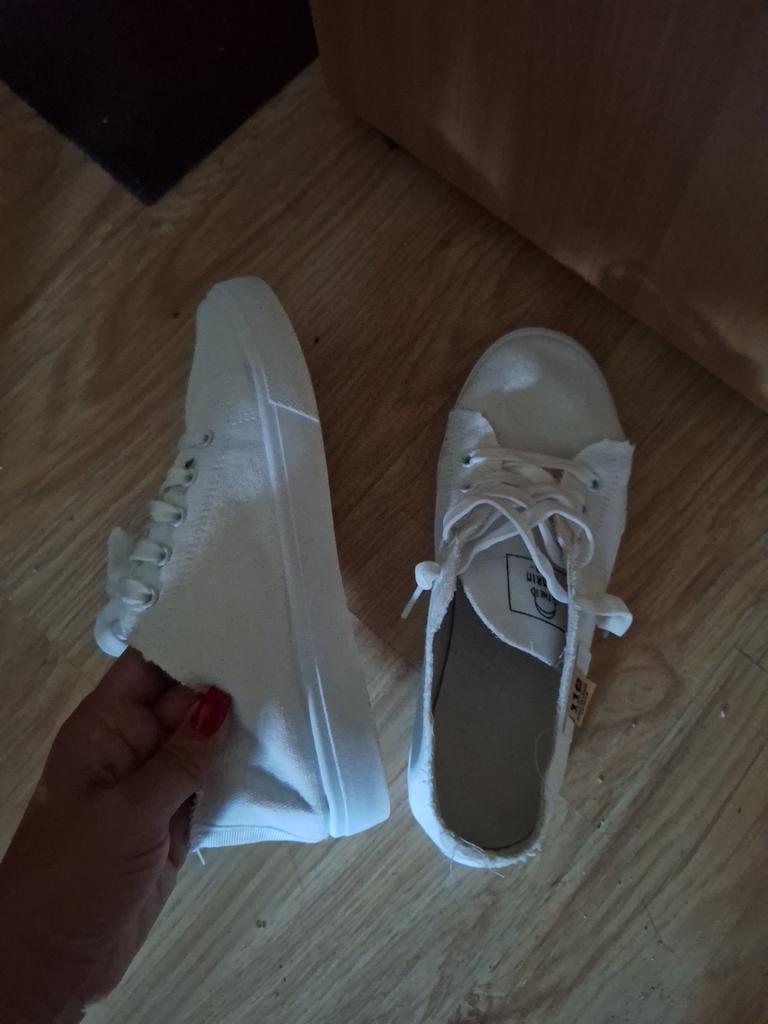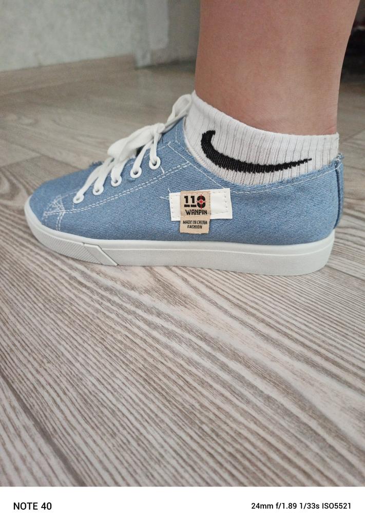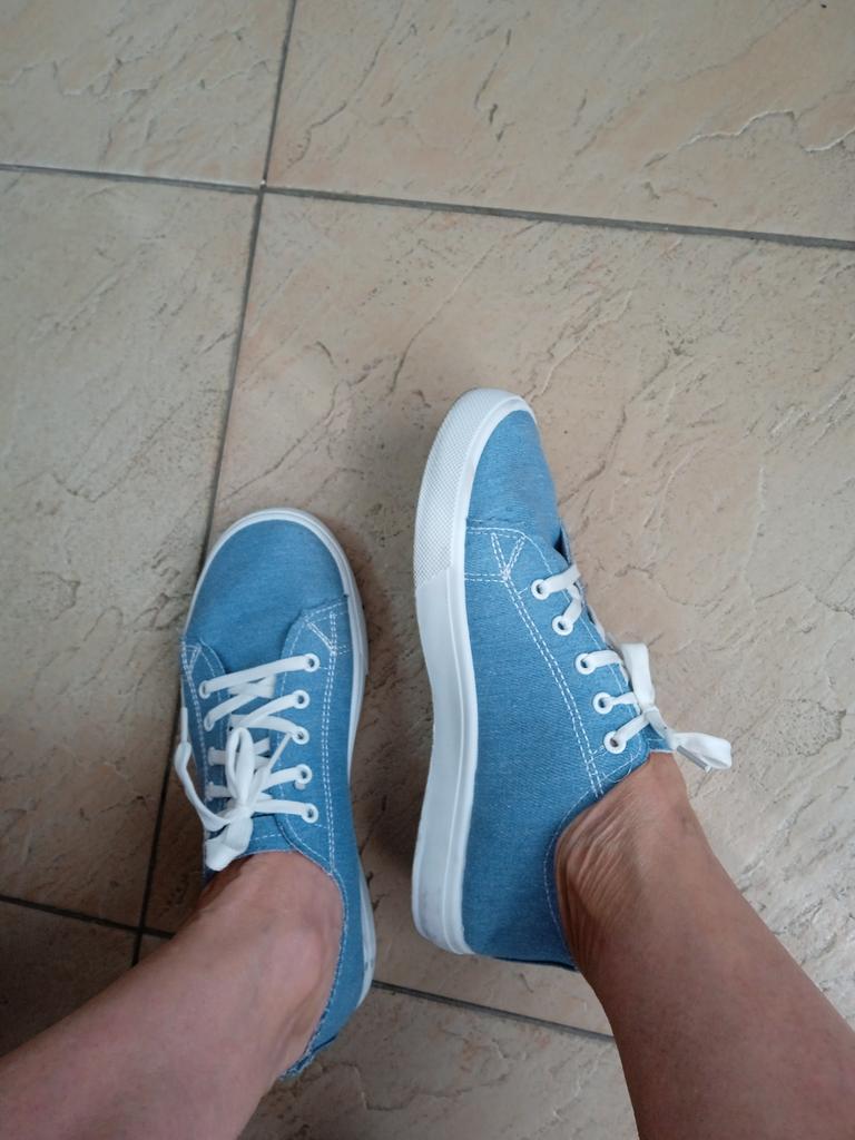 Muy ligeros y cómodos, caminar en verano es un placer, ¡el pie respira! Talla pequeño en una talla, cogí 39 que me queda justo, mi talla es 38 (24 cm de plantilla). El material es como vaquero, cosido bien. Recomiendo