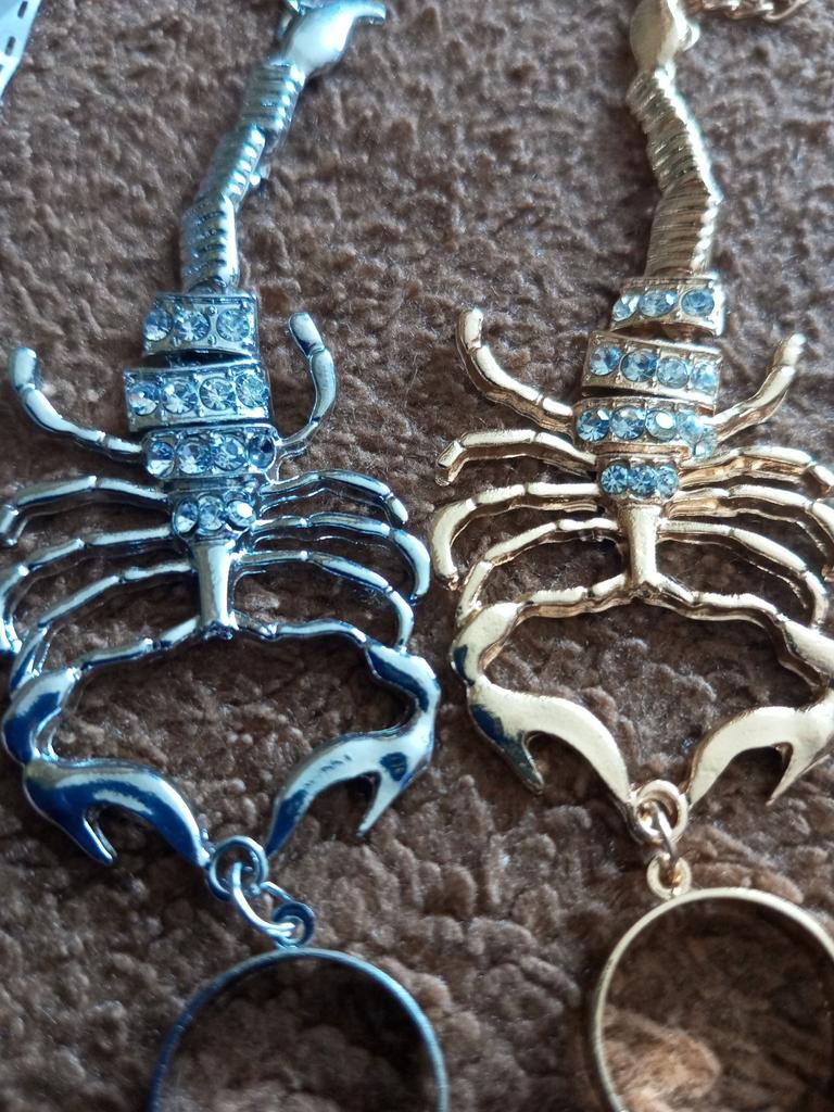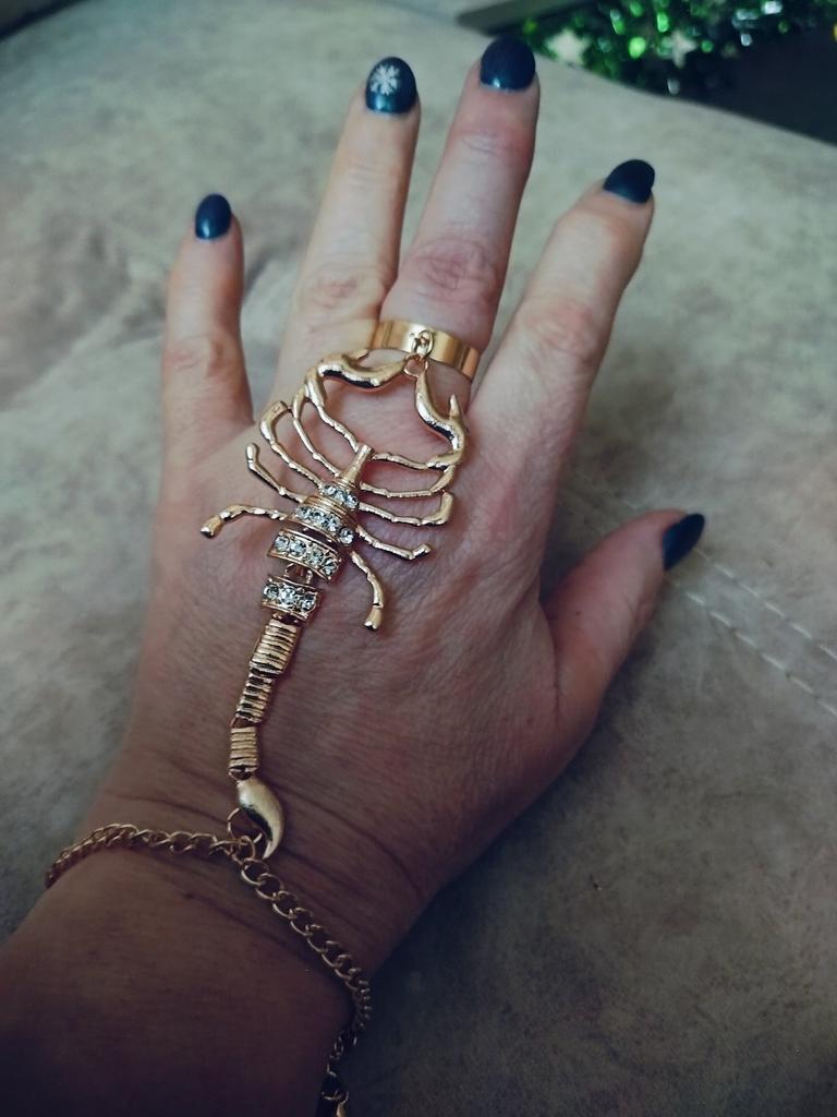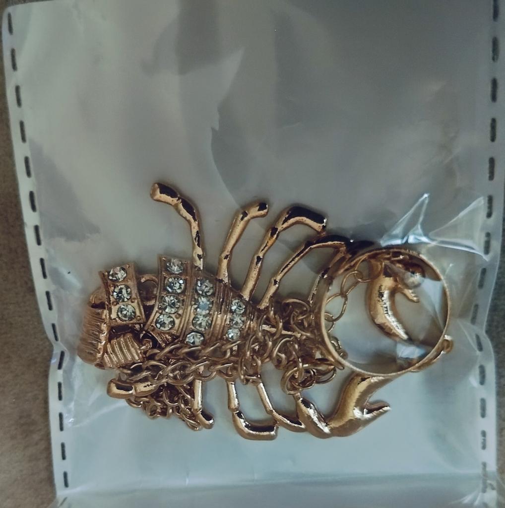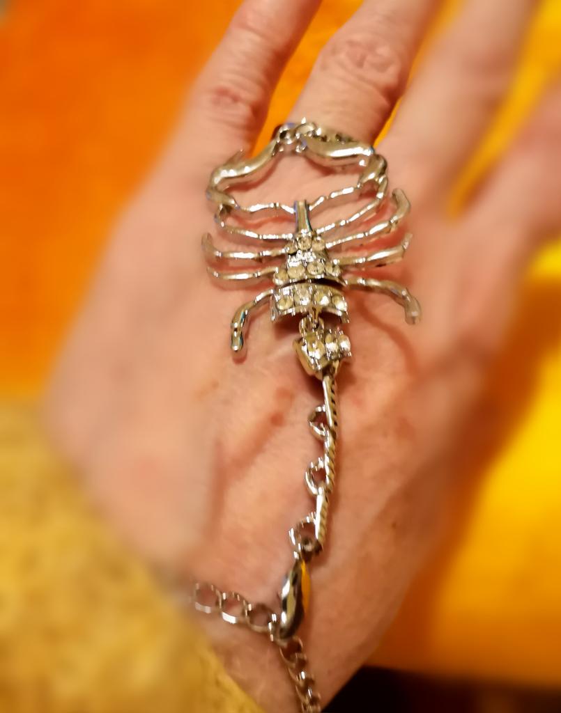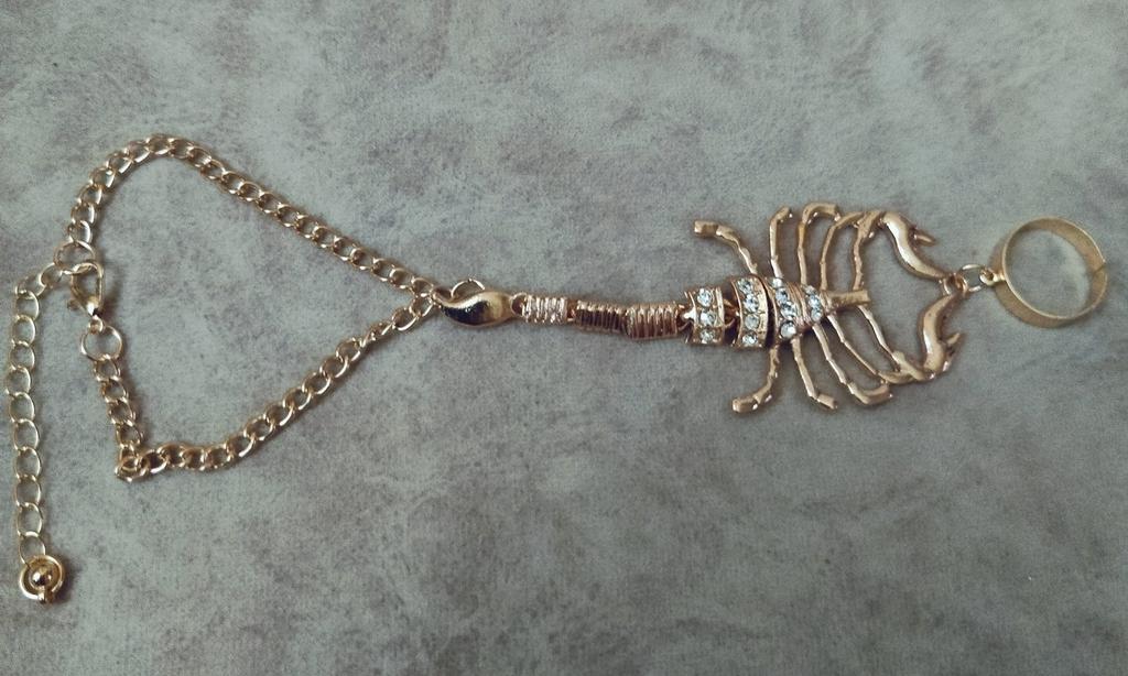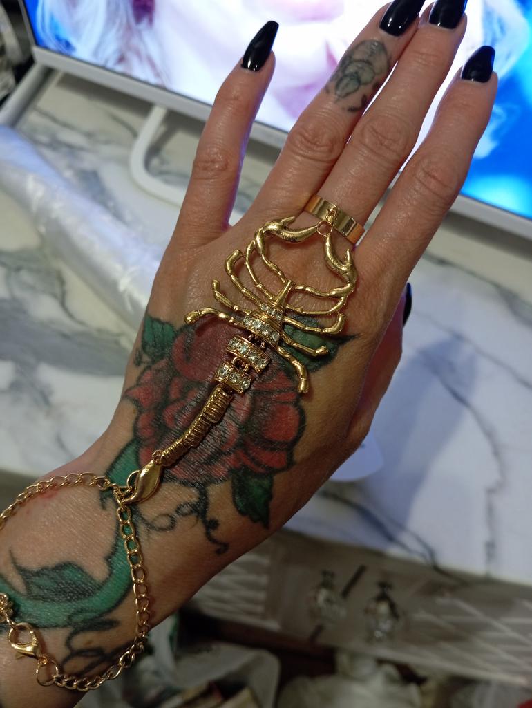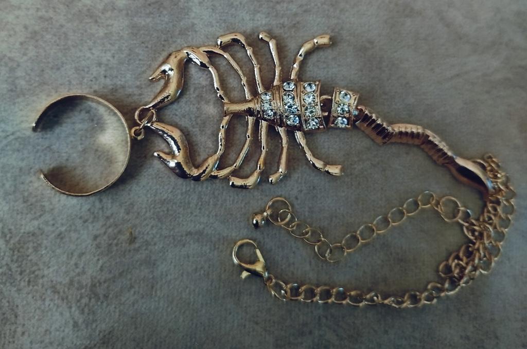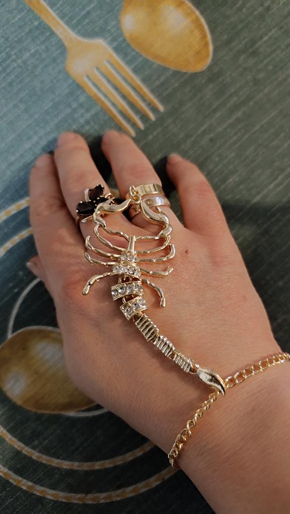 Conjuntos de pulsera y anillo de cadena con borla de escorpión Vintage para mujer y hombre, anillo de diamantes de imitación, pulseras de dedo conectadas, joyería
