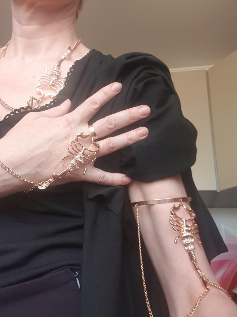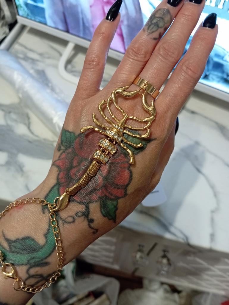 Pulsera muy bonita, todo encaja, el anillo es ajustable para adaptarse a tu dedo.