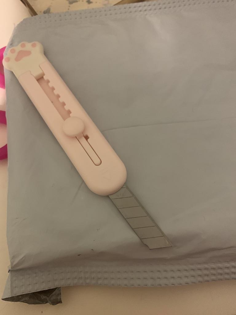 Mini cuchillo Kawaii de bolsillo con forma de Pata de Gato, caja exprés, cortador de papel, envoltura artesanal, hoja rellenable, papelería