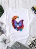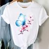 (Asian Size) Short Sleeve Tee Top Butterfly Flower Sweet 90s Trend Lovely Fashion Tshirt Women Clothing Casual Print Lady Female Graphic T-shirt