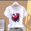 (Tamaño asiático) Camiseta con Estampado para Mujer Corazón de Amor Tendencia Estilo Lindo Años 90 Top Ropa Camiseta de Moda Manga Corta Casual Dama Femenina Camiseta Gráfica