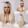 ALAN EATON Pelucas sintéticas de capas rectas de color marrón Omber con flequillo de cortina pelucas onduladas largas para mujeres uso diario cabello resistente al calor