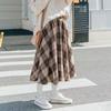 Mori Girl Otoño Invierno mujer falda elegante de cintura alta Vintage a cuadros falda de lana cálida faldas de lana elegantes rosa azul caqui para mujer