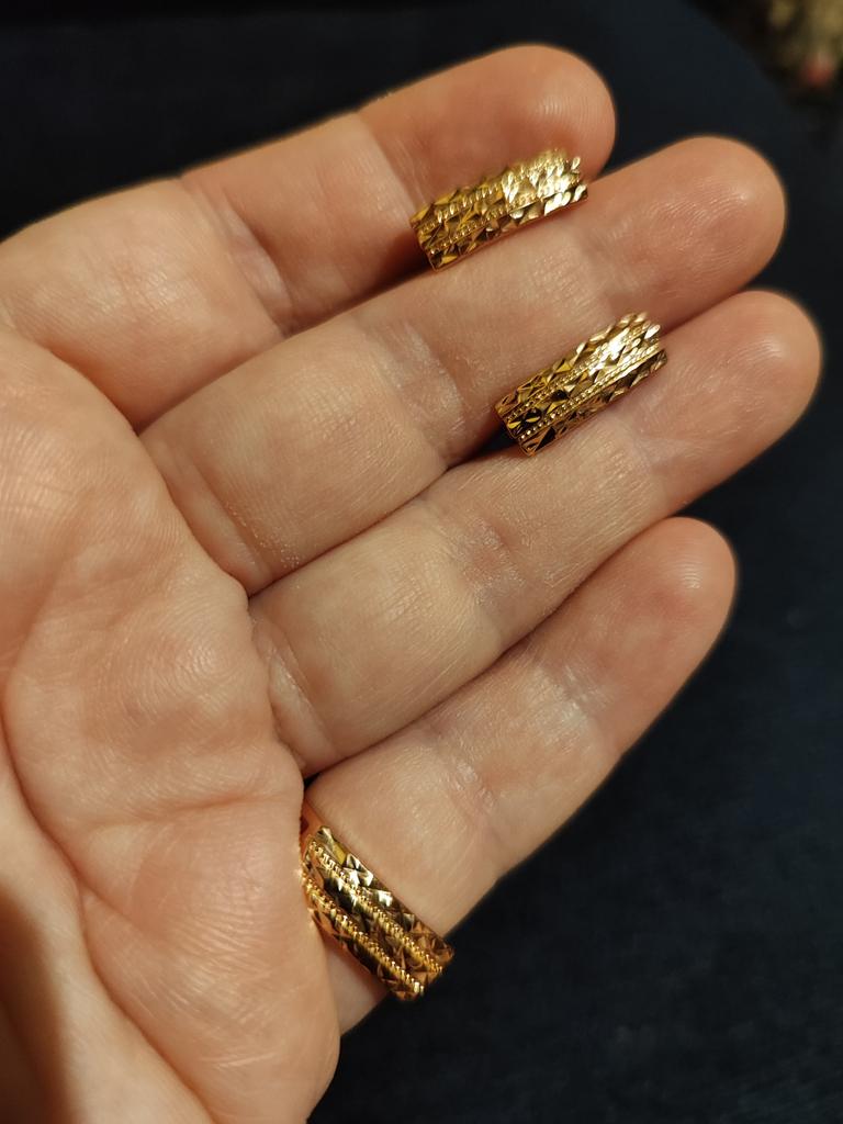 Conjunto de anillos y pendientes chapados en oro con diseño de textura en relieve, joyería llamativa, accesorios para fiestas