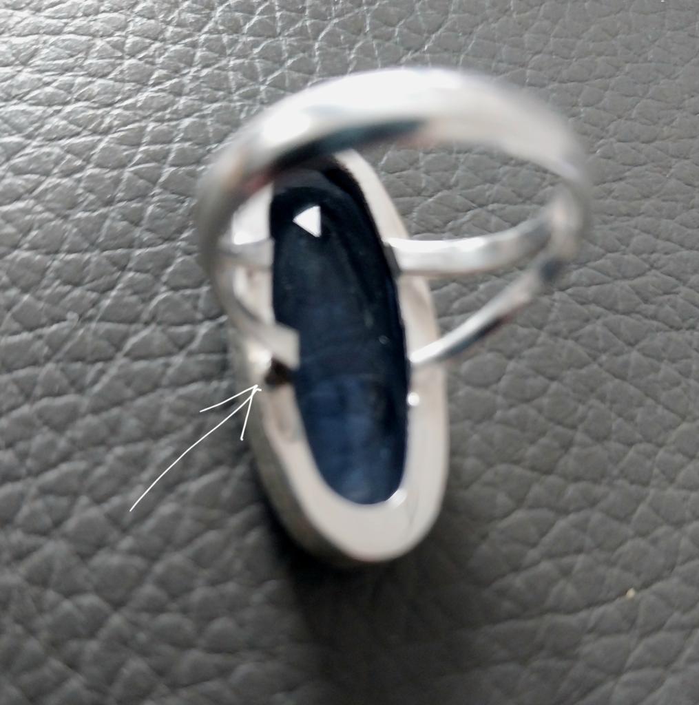 Se ve la unión del metal en la montura (el teléfono no transmite la unión que se ve en vivo), una parte no está soldada. La idea del anillo es preciosa, concisa, el acento está en la piedra de un color precioso..