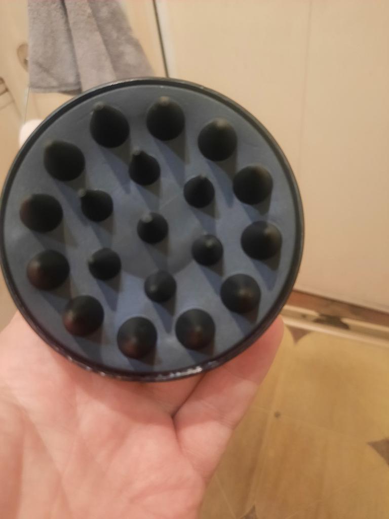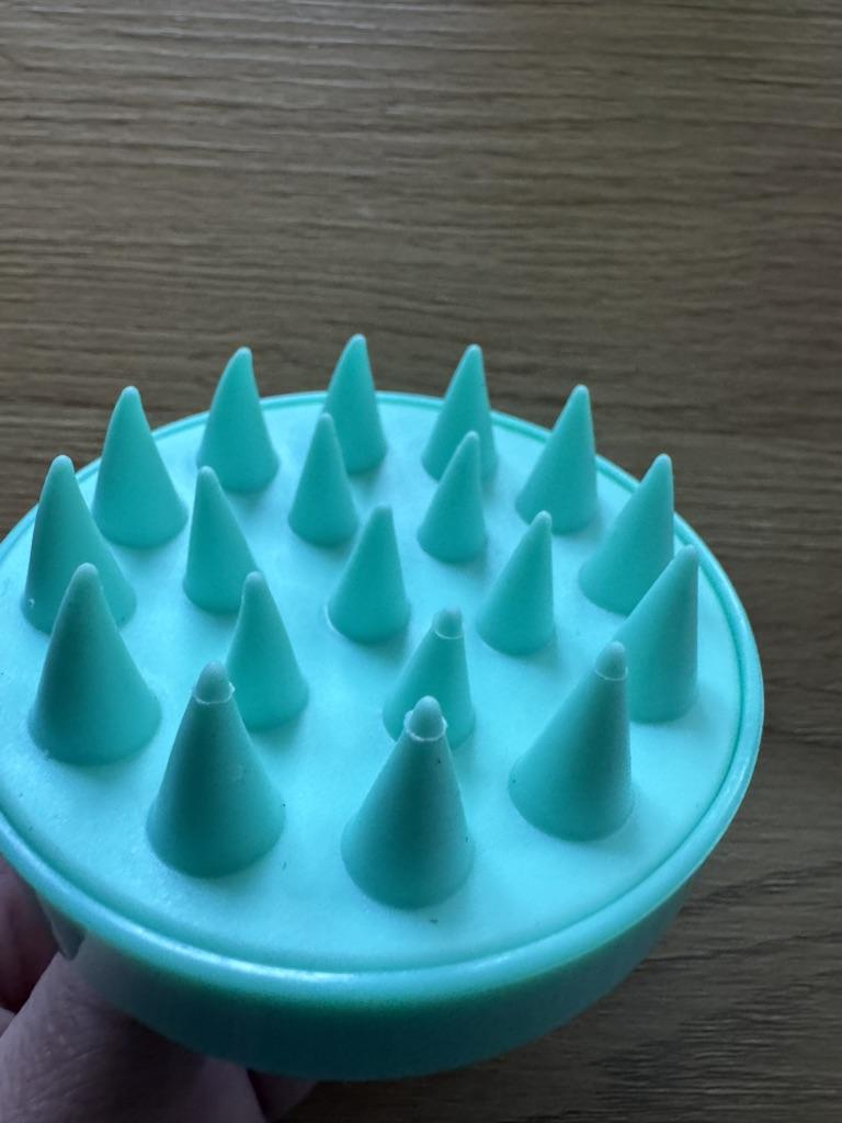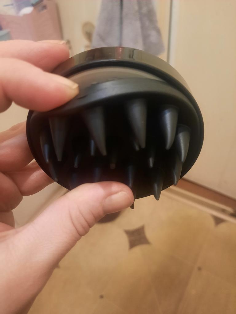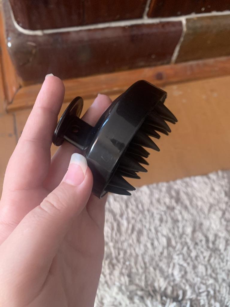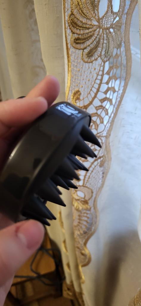 Un masajeador genial, se adapta cómodamente a la mano, ayuda mucho al lavarse la cabeza