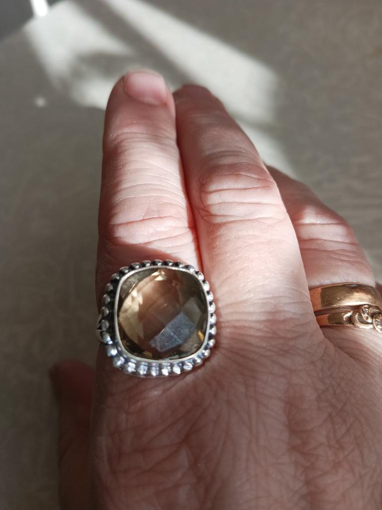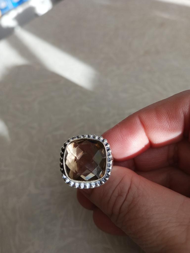Joyería de plata de ley 925 con piedras preciosas de topacio ahumado, hermoso anillo hecho a mano