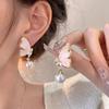 Pendientes Redondos Simples de Perla de Imitación con Mariposa de Pedrería, Moda para Mujer, Personalidad, Pendientes de Botón Pequeños, Joyería de Tendencia