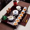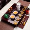 Juego de té chino de vidrio transparente resistente al calor, juego de té de madera maciza con paquete de bandeja de té Kung Fu