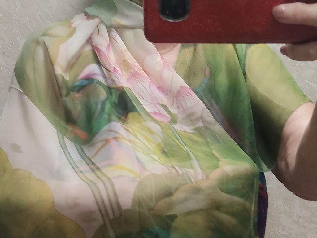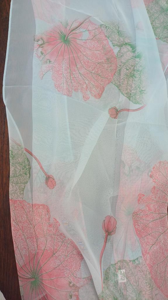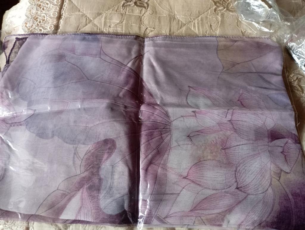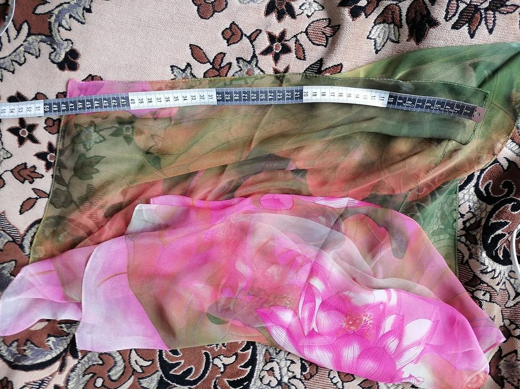 En la foto parece que hay rosas, pero los lotos que recibieron estaban pintados. Esperaba una imagen más artística. La tela no está mal, gasa artificial, una bonita bufanda.